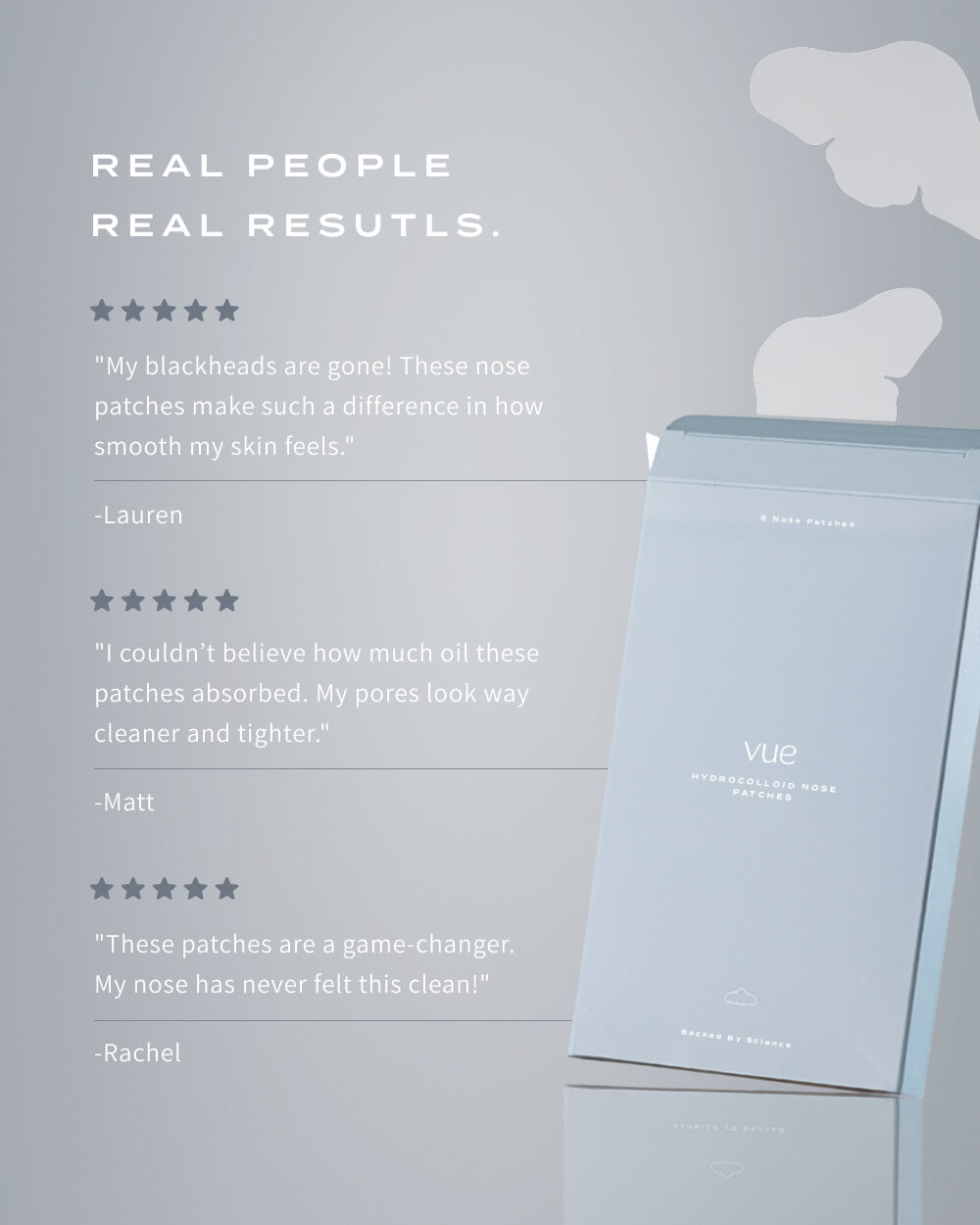 Blackheads are tiny bumps on your skin that appear when your pores get clogged with dead skin cells, oil, and bacteria. The patch will help reduce their appearance by drawing out dirt and oil from your pores. For the best long-term results, consistent use of our patch is key.